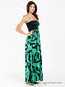 Детали: отрезной лиф на многорядной резинке декорирован шнуровкой спереди; юбка украшена оригинальным принтом; тонкие бретели регулируются по длине, перекрещиваются на спине