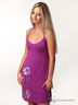Сарафан приталенного силуэта, расширенный к низу, из гладкокрашеного трикотажа. Спинка резная, с рельефными швами. Проймы, вырез и бретели выполнены из бейки. На полочке и спинке располагается печать.