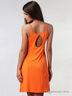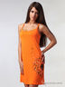 Слегка приталенный сарафан на бретелях, на спинке округлый вырез, изделие декорировано набивным принтом.