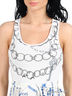Детали: круглый вырез, без рукавов, отрезной верх, талия со шлевками и на поясе, оригинальный принт