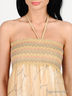 Детали: отрезной лиф на многорядной резинке; юбка декорирована оригинальным принтом; завязки через шею
