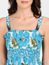 Детали: отрезной лиф на многорядной резинке; бретели на пуговицах; оригинальный принт