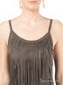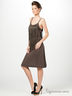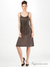 Детали: сарафан на тонких лямках, лиф с лицевой стороны и по спинке отделан разрезанной вставкой из основного материала и нитками, сзади небольшая металлическая вставка с логотипом бренда.