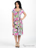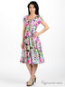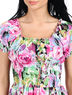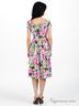Детали: круглый вырез на резинке, короткие рукава-фонарики, широкий втачной пояс-резинка, яркий принт