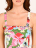 Детали: отрезной лиф на многорядной резинке; съемные бретели на пуговицах; оригинальный принт
