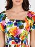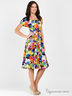 Детали: круглый вырез и короткий рука на резинке; пояс посажен на многорядную резинку; оригинальный принт