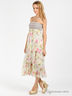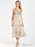 Детали: отрезной лиф на многорядной резинке; юбка декорирована оригинальным принтом; завязки через шею