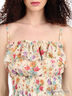 Детали: верх изделия усилен резинкой и декорирован воланом, тонкие не регулирующиеся по длине бретели, завышенная талия дополнена многорядной резинкой, низ изделия дополнен воланом