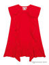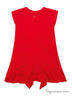 Практичный сарафан из эластичного трикотажа ярко розового цвета. Горловина и пройма рукавов обработана трикотажной бейкой. Сарафан декорирован объемным бантом и оборкой. Низ платья с воланами в два ряда.