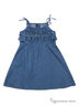 Великолепный сарафан из тонкой джинсы. Застежка - потайная молния на спинке. Тонкие бретели на завязках. Топ украшен рюшами. Пышная юбка.