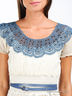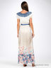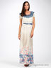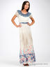 Эффектный легкий сарафан из приятного на ощупь материала. Кокетка из вязаного кружева, декорирована деревянными бусинами. Пояс посажен на многорядную резинку. Короткие рукава реглан на резинке. Застегивается на молнию сбоку. Яркий оригинальный принт. В комплект входит тонкий кожаный ремешок.