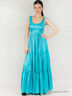 Яркий, насыщенного цвета, сарафан из мягкого трикотажа. Глубокий полукруглый вырез на спинке оканчивается шнуровкой. Подол выполнен широкими воланами до пола. Модель подчеркнет Ваш изысканный вкус и стиль. Отличный вариант на каждый день.