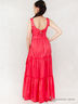 Яркий, насыщенного цвета, сарафан из мягкого трикотажа. Глубокий полукруглый вырез на спинке оканчивается шнуровкой. Подол выполнен широкими воланами до пола. Модель подчеркнет Ваш изысканный вкус и стиль. Отличный вариант на каждый день.