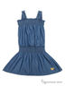 Стильный сарафан из тонкого денима - прекрасный вариант для лета. Верх топа, бретели и пояс оформлены сборками на резинку. Пышная юбка-солнце. Декор - аппликация на юбке.