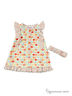 Комплект состоит из двух предметов: сарафан и повязка. Сарафан с короткими рукавами и округлым вырезом горловины. Спереди изделие дополнено застежкой на пуговицы. Отличный вариант на каждый день.