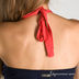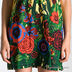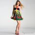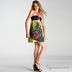 Сарафан на широкой брители через шею. В ыполнен из трикокотажа ярких цветов, по низу подола большой цветочный принт. Юбка с тонким подъюбником.