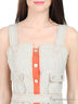 Детали: застегивается спереди; планка с пуговицами контрастного цвета; два накладных кармана; в шлевки продет пояс