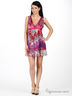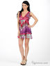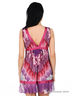 Детали: сарафан с ярким рисунком, широкие бретели, вставки из плиссированной отделочной ткани украшают изделие, V-образный вырез спереди и сзади, отрезной по линии талии, застежка на молнии по шву, подкладка - органза.
