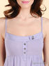 Детали: отрезной лиф на тонких бретелях декорирован планками на пуговицах, фигурный крой низа изделия.