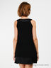 Элегантный сарафан свободного силуэта. Выполнен из шелковистого материала с атласными вставками. Округлый вырез горловины. Без рукавов. Спереди модель украшена пуговицами.