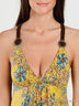 Детали: топ выполнен резинкой, V-образный вырез горловины, тонкие оригинальные плетеные бретели, юбка с плиссировкой