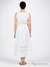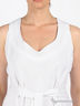 Легкий льняной сарафан станет Вашим спасением в жаркую погоду. Без рукавов. Широкий округлый вырез. Свободный покрой, приталенный силуэт. Спинка посажена на многорядную резинку. На уровне талии вшит неширокий поясок, завязывающийся в бант. Декоративные вставки из кружевной ленты на вороте и подоле изделия.