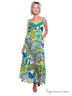 Яркий летний сарафан расклешенного кроя. Выполнен из гладкого, приятного на ощупь материала. На тонких регулируемых бретельках, отрезной лиф украшен рюшами. Сочный оригинальный принт.