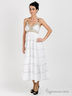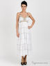 Детали: отрезной лиф сзади посажен на многорядную резинку; бретели завязываются через шею; декорирован контрастной прострочкой и декоративной тесьмой