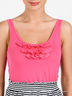 Детали: глубокий круглый вырез; отрезной лиф; пояс на резинке; юбка декорирована принтом - полоска, лиф оригинальными оборками