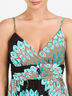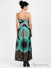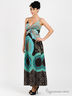 Детали: тонкие бретели регулируются по длине; втачной пояс с драпировкой декорирован крупными пришивными стразами; застегивается на молнию сбоку; оригинальный принт