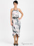 Детали: застегивается на молнию на спине; тонкие бретели; декорирован принтом и деревянными бусинами; в шлевки продет пояс-резинка с металлической пряжкой; оригинальный крой низа
