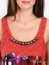 Детали: круглый вырез, на бретельках, отрезной лиф украшен крупными серебристыми бусинами, яркий оригинальный принт