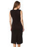 Сарафан трикотажный полуприталенного силуэта выполнен плотной вязкой. Рельефные швы отстрочены декоративным шнуром. Сзади сарафана шлица.