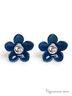 Серьги-гвоздики выполнены из гипоаллергенного сплава, на лепестки нанесена эмаль, декорированы стразами Сваровски.