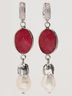 Состав: корунд ювелирной огранки, жемчуг натуральный барочный, ювелирный сплав с добавлением серебра, коралл натуральный, кристаллы Сваровски, покрытие золото
