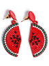 Серьги «АРБУЗ» - это по-настоящему летнее, солнечное украшение, которое, без сомнений, подарит своей хозяйке и всем окружающим ее людям заряд отличного настроения на целый день! Серьги представляют собой подвески, выполненные в виде долек арбуза красного цвета с сочной зеленой «корочкой», выложенные из крошечных бусин.