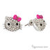 Изделия Hello Kitty производятся с использованием только оригинальных кристаллов Swarovski. Все изделия Hello Kitty покрываются родием (металлом платиновой группы) или золотом (18-24 карат). Абсолютно все украшения не содержат никель. Все покрытия являются гипоаллергенными. Для обеспечения прочной посадки кристаллов в изделиях каждый кристалл вставляется вручную. Длина 12 мм, ширина 13 мм.