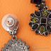 Серьги из серебристого черненого металла с зелеными и синими кристаллами. Составляет комплект с артикулами С6177 и R6020.