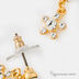 Тройное покрытие. Первое нанесение -медное, второе - палладиевое, которое изолирует медное покрытие от золотого и гарантирует прочность последнего. Третий слой - покрытие 18-ти каратным (750 пробы) золото. Хрусталь Сваровски.