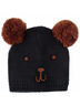 Шапка украшена двумя помпонами и вышивкой в форме глазок и носика.
