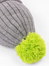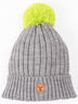 Шапка украшена помпоном яркого цвета и нашивкой из искусственной кожи с рисунком.