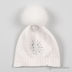 Полушерстяная обтягивающая шапочка украшена меховым помпоном и узором из страз.