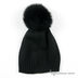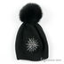 Полушерстяная обтягивающая шапочка украшена меховым помпоном и узором из страз.