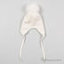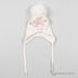 Полушерстяная обтягивающая шапочка с ушками и завязками украшена крупным помпоном и принтом со стразами. Хлопковый подклад.