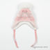 Полушерстяная обтягивающая шапочка с ушками и завязками украшена меховым помпоном, принтами и стразами. Хлопковый покдлад.