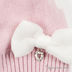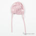 Плотная обтягивающая шапочка с ушками и завязками украшена принтами и пришитым декоративным элементом.