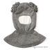 Полушерстяная обтягивающая шапочка с горлом украшена пришитыми декоративными элементами и стразами.