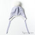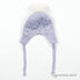 Полушерстяная обтягивающая шапочка с ушками и завязками украшена крупным помпоном и стразами. Хлопковый подклад.