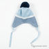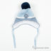 Полушерстяная обтягивающая шапочка с ушками и завязками украшена нашивкой и меховым помпоном.Утеплена синтепоном. Хлопковый подклад.