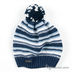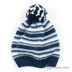 Полушерстяная обтягивающая шапочка украшена помпоном и контрастными полосками.